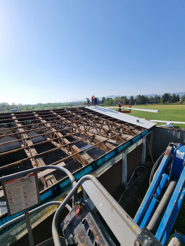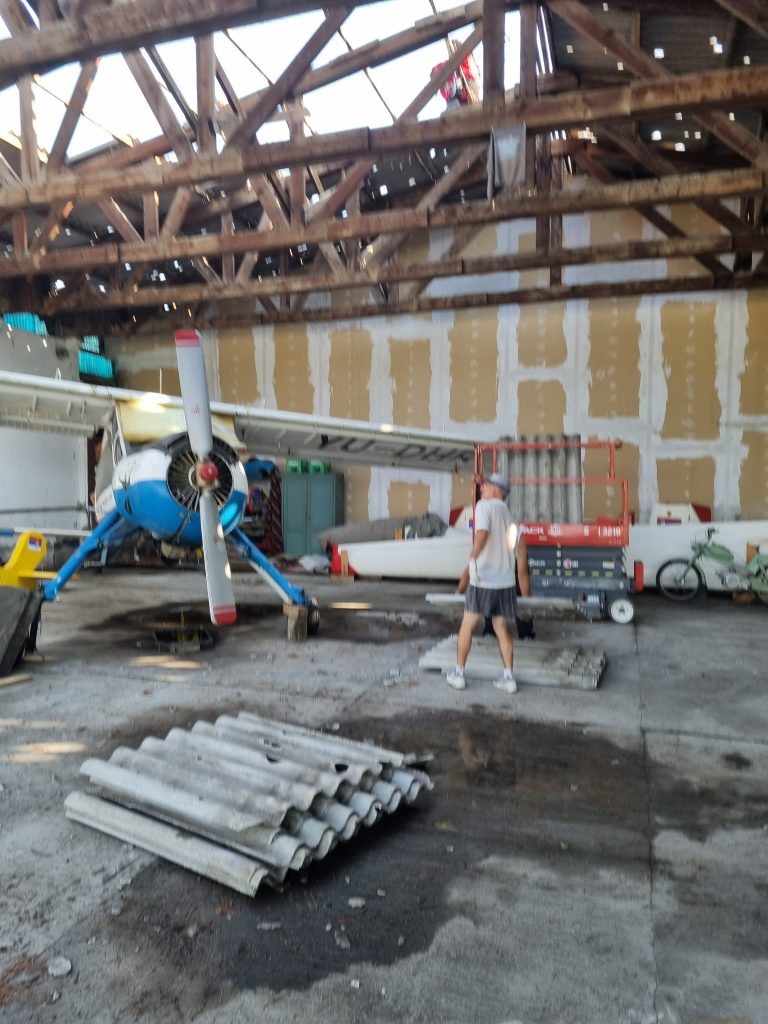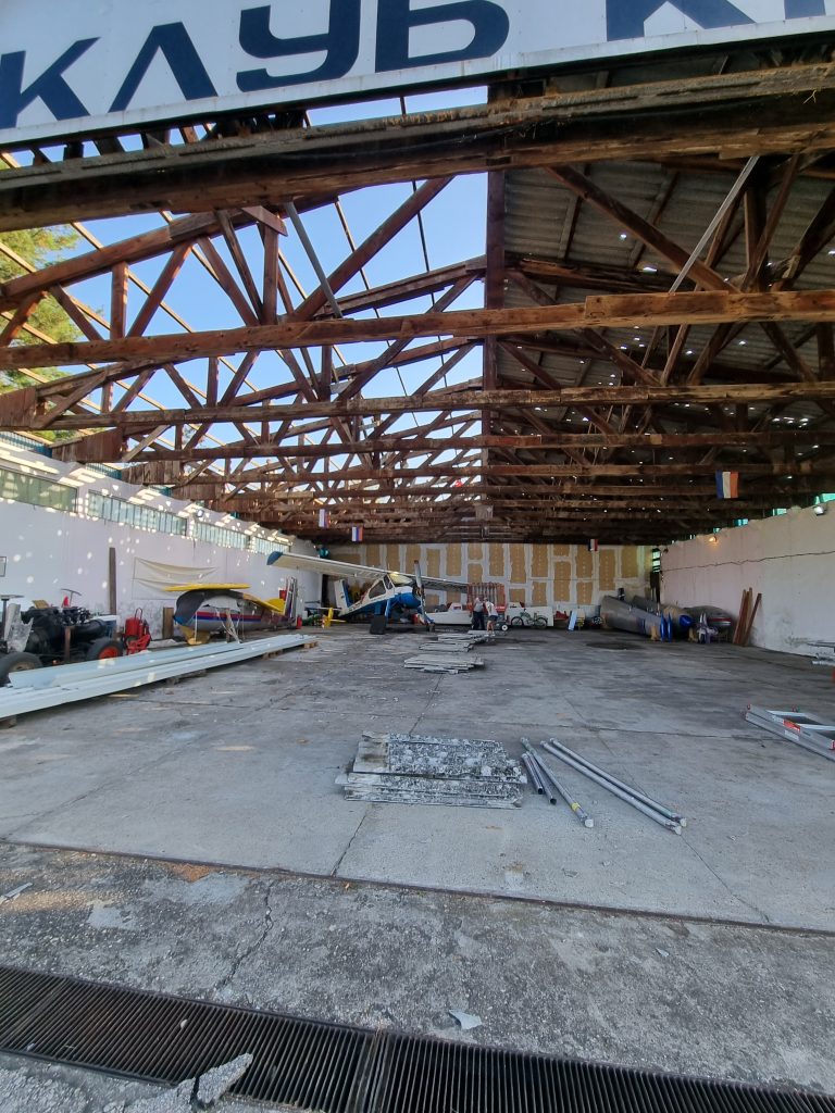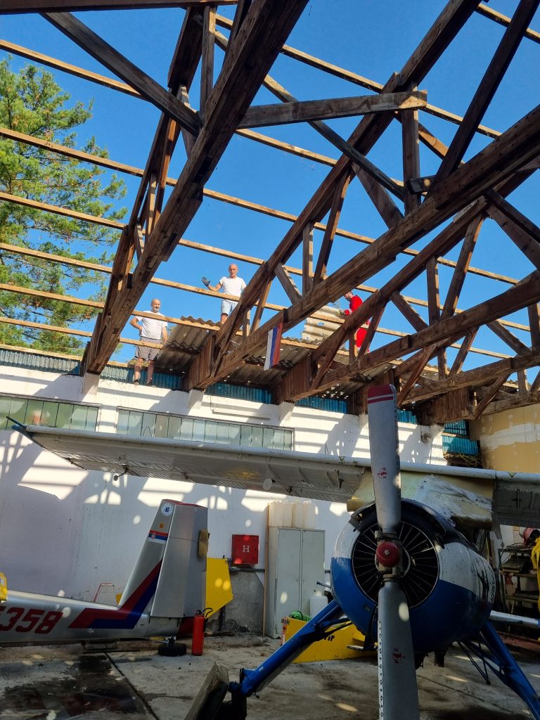 Успели смо у рекордном року, да набавимо довољну количину одговарајућег црепа и да пре кише која је почела у уторак веће 25.07 санирамо кров интерната и ресторана аероклуба, као и да привремено најлоном заштитимо просторије учионице.