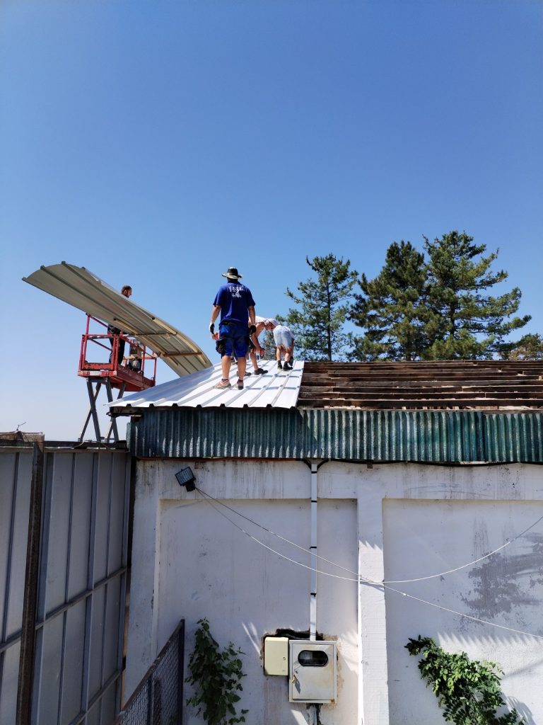 Потом је уследила велика радна акција и рад на замени кровног покривача, где су чланови својим средствима и својом радном снагом у неколико дана извршили радове. Слике говоре о томе колико је то био велики подухват.